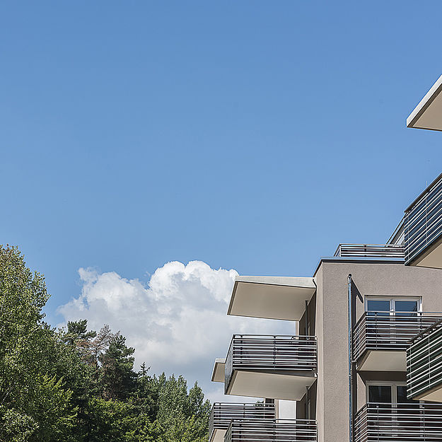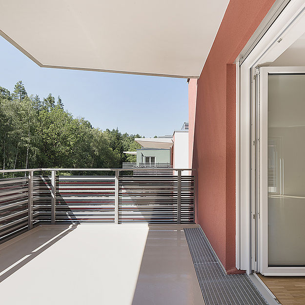 Alle Wohnungen sind barrierefrei erreichbar und haben jeweils sehr große Balkone oder Mietergärten.