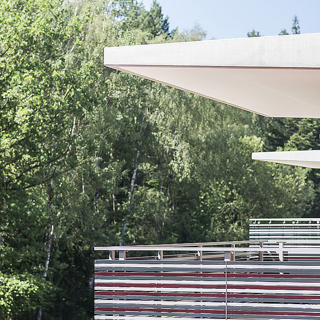 Die leichte Hanglage und die gewählte Positionierung der Häuser erzeugen für jeden Raum aller Wohnungen direkte Blickbeziehungen zum Wald.